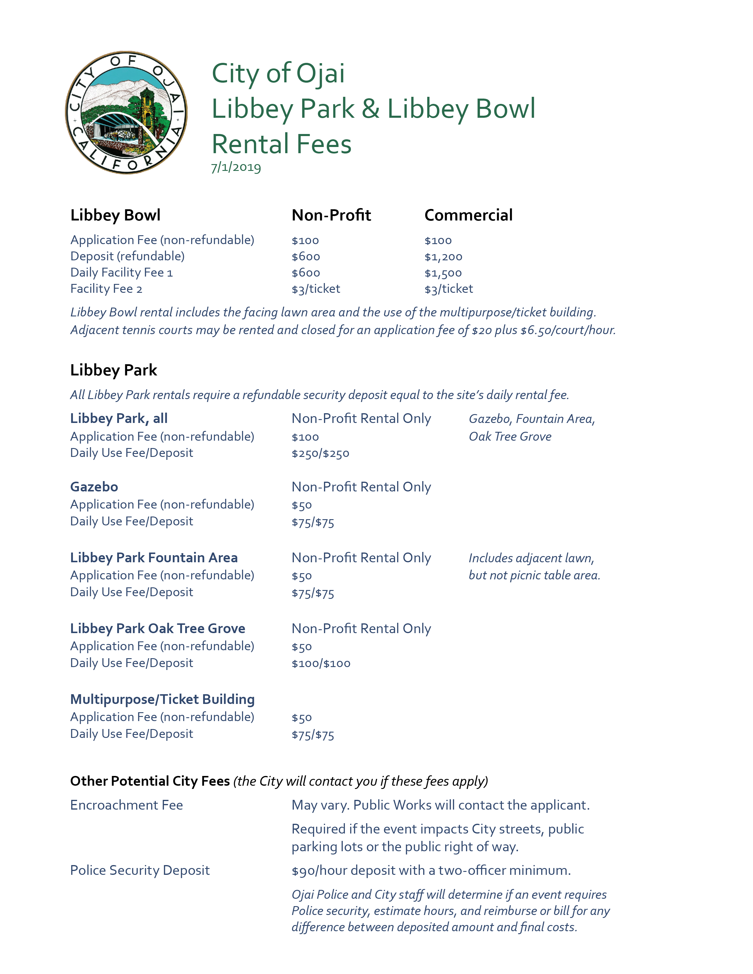 Libbey Bowl is available to rent on a space-available basis with a balance of commercial and community events. The City contracts with Ojai Valley Music (OVM), which brings their concert series to the site consisting of between 10 and 24 events each year. Ojai Valley Music is our exclusive commercial promoter through 2028. Please visit libbeybowl.org for more details.